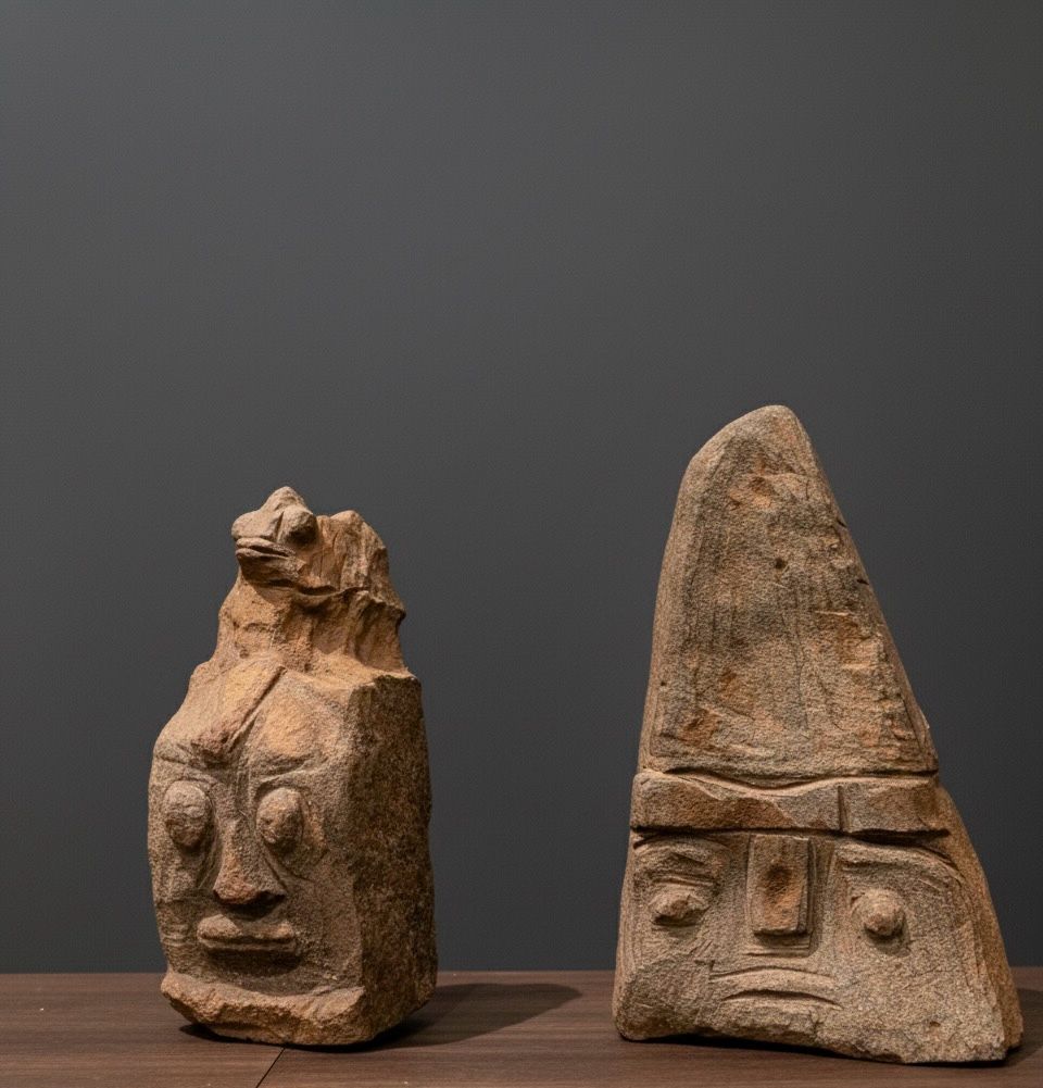 Esculturas em pedra por Zaviê, Coleção Elo Manifesto, 2025.